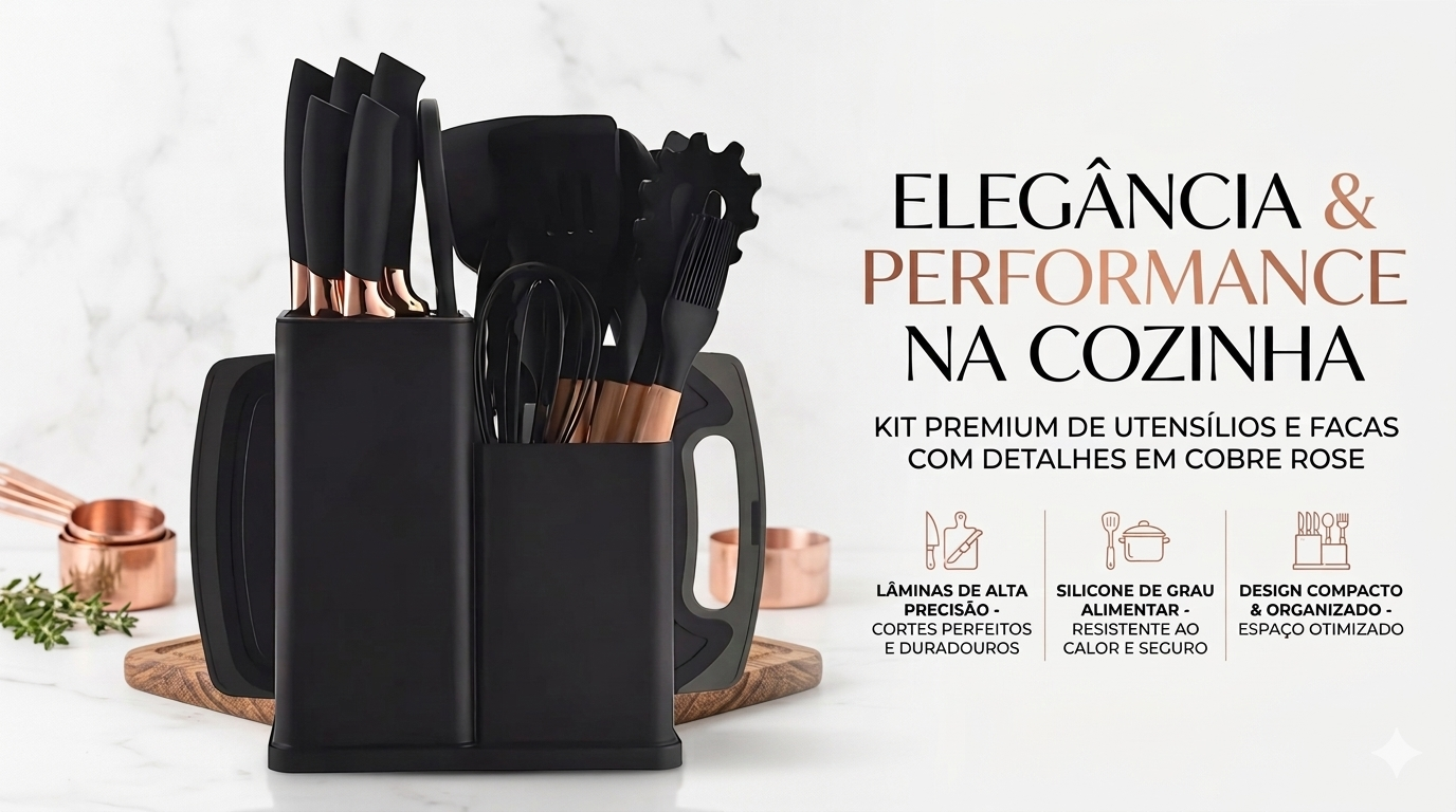 Kit Conjunto 19 Peças Utensílios de Cozinha em Silicone e Madeira